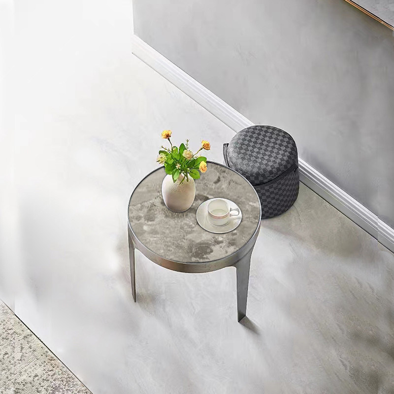 Inti dari desain adalah meja keramik marmer, yang berfungsi sebagai pusat dari meja samping.Bahan keramik marmer menawarkan permukaan yang halus dan dipoles dengan pembuluh darah alami dan polaKombinasi keramik dan marmer menciptakan estetika yang unik dan menawan yang meningkatkan keanggunan keseluruhan karya.
