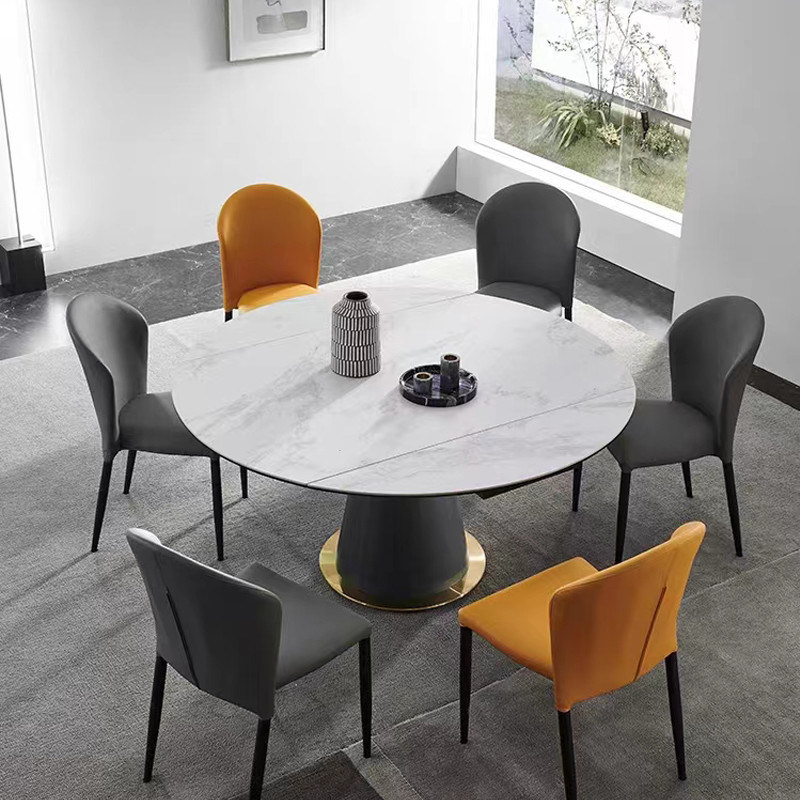 Meja Makan Marmer Keramik Bulat Ekstensi Dengan Desain Canggih, Gaya Modern |
